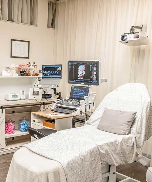 Combining cutting-edge technology with a spa & theater environment, we bring unbelievable images of your unborn baby to life all while you and your family relax and bond. From the moment you walk into our studio, you will notice a distinct difference from other locations. We believe in comfort, style, and a modern spa feeling rather than the traditional "sterile business building." Our spacious ultrasound room is equipped with a large 120 inch plus screen so families can share this experience with family and friends.